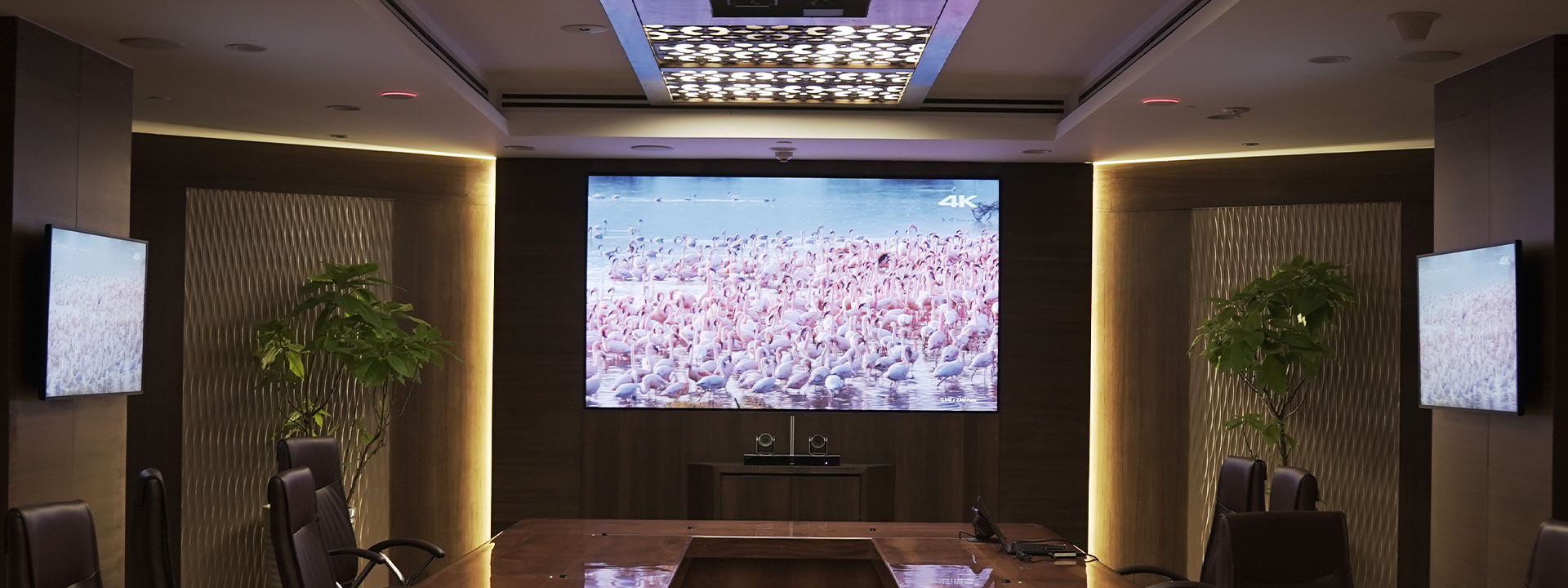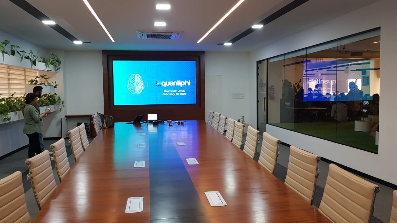Màn hình LED phòng họp ngày nay khá phổ biến, thông dụng. Màn hình LED thay thế cho máy chiếu và backdrop thông thường. Bởi chúng có rất nhiều ưu điểm như: chi phí thấp, hình ảnh sắc nét, không bị mờ, nhiễu,… Màn hình LED được lắp tại các phòng họp, phòng hội trường của các cơ quan.